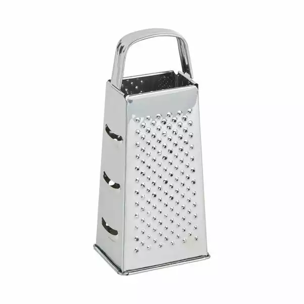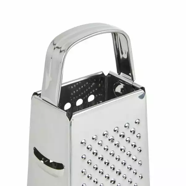 This grater features 4 sides for coarse and fine grating, zesting and slicing. With a sturdy non-slip base and comfortable handle this grater is easy and convenient to use.